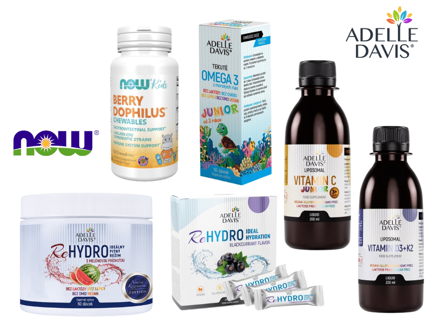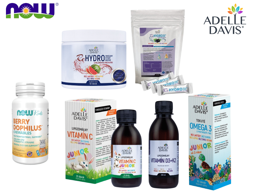 Doplnky výživy v balíčku JUNIOR v spolupráci DNA4FIT, ADELLE DAVIS a NOW pre deti od 3 rokov obsahujú: